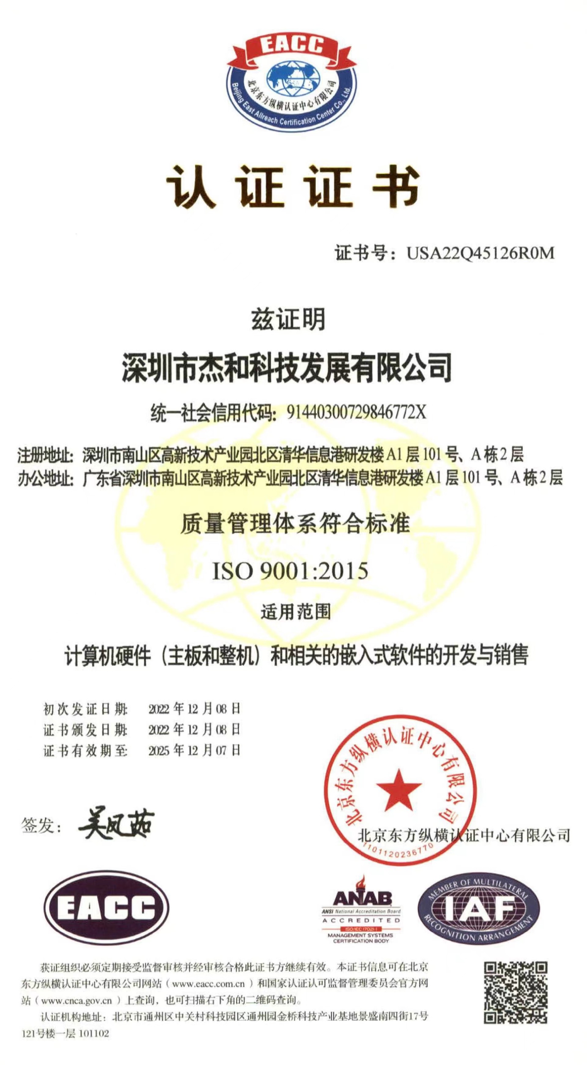 ISO9001质量管理体系认证作为国际标准化组织的管理性质标杆,它的地位可见一斑,其认可彰显了k8.com科技的体系管理以及产品的质量。k8.com科技在过去几年不断提升设备标准化生产的能力,减少人为质量问题,把ISO9001质量管理体系理念贯穿于产品研发—生产全流程。