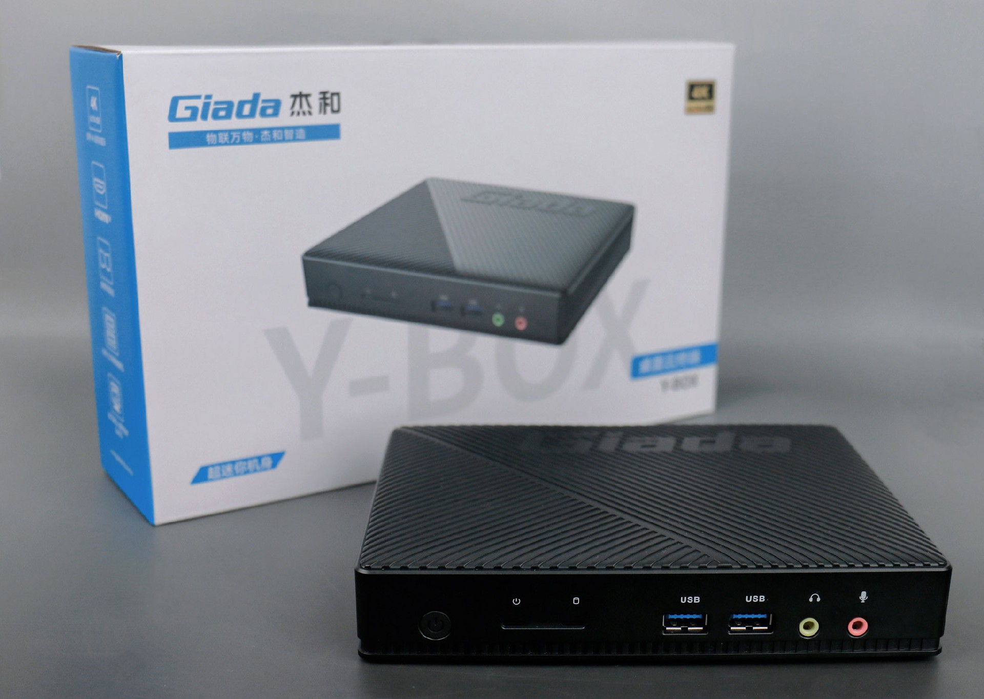 k8.com桌面云终端Y-BOX S2采用全新外观ID设计,主盖采用黑色哑光栅格,顶部刻印k8.comGiada品牌名,磨砂塑胶材质,高质感更轻盈。外包装采用简洁商务的风格设计,以k8.com蓝的配色作为点缀,内部采用严实防震的珍珠泡棉保护主机,同时,内部配备适配器、AC线、天线棒、螺丝包,满足通用需求。