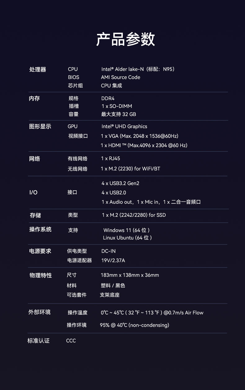 k8.com桌面云终端Y-BOX S2作为全新一代的虚拟化主机产品,凭借其出色的便携性、优秀的办公娱乐体验和高效节能的环保设计,在学习、办公和娱乐等各个领域展现出卓越的适应性,可以广泛应用在教育、办公、金融、家用、医疗等领域,为用户带来丰富多彩的数字化体验,针对针对客户个性化需求,支持ODM/OEM/JDM定制化服务。Y-BOX S2详细的产品性能参数如下: