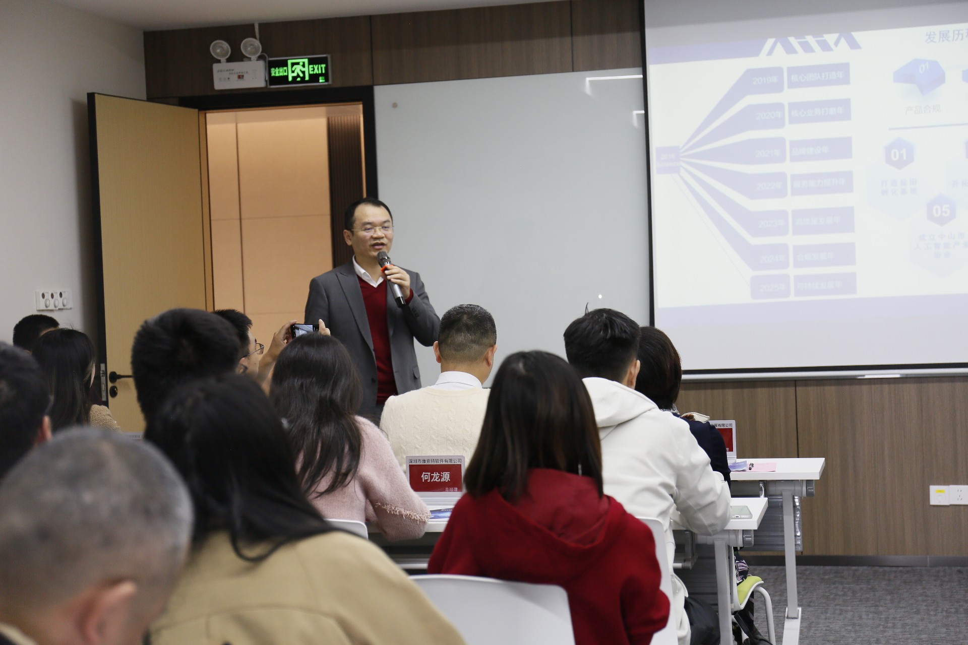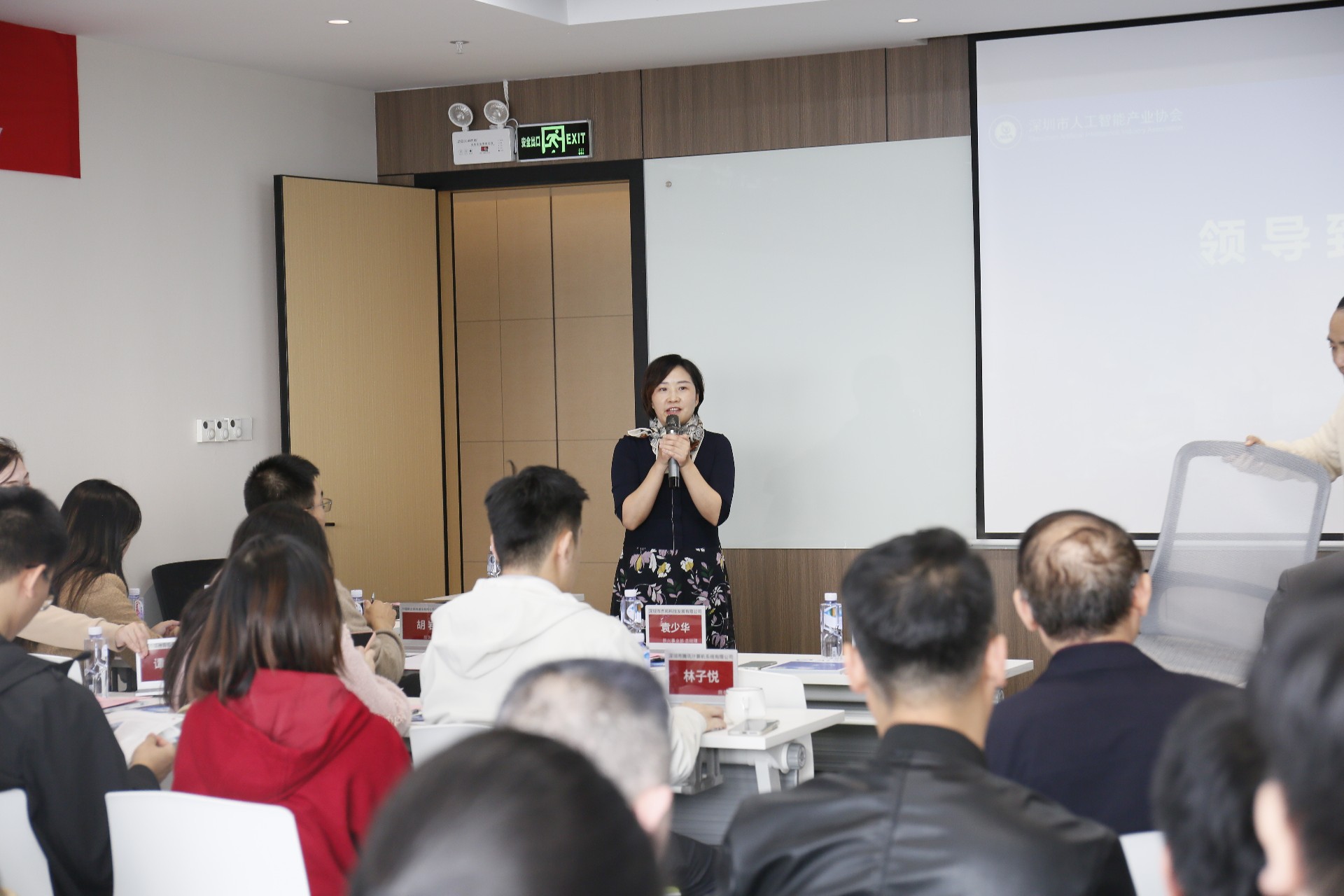 随后,深圳市人工智能产业协会轮值会长韦添誉汇报了近期协会的工作成果,并对AI行业未来趋势进行了深入解读。
