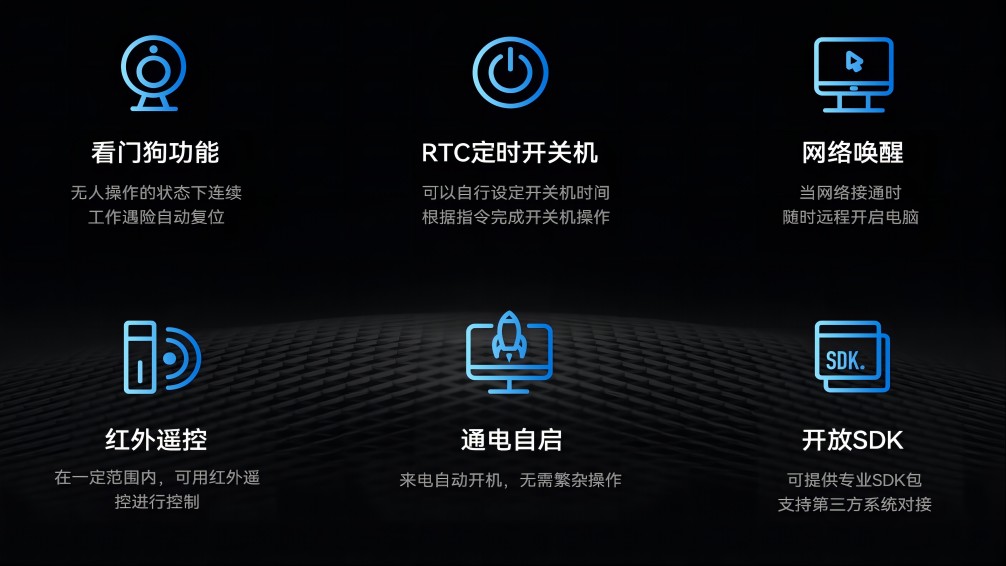 除了强大的硬件性能和广泛的应用场景外,AF208还支持JAHC(k8.com主动硬件控制技术),JAHC是高可靠无人值守系统,是由k8.com科技自行定义开发的一套结合了软硬件的控制系统,该系统是k8.com科技完全自主研发,包含上电自启,复杂逻辑定时开关机,软件看门狗、断电恢复后网络唤醒功能,宕机自动重启以及红外遥控等智能功能,进一步提升了其在工业智能化和自动化控制中的应用价值。