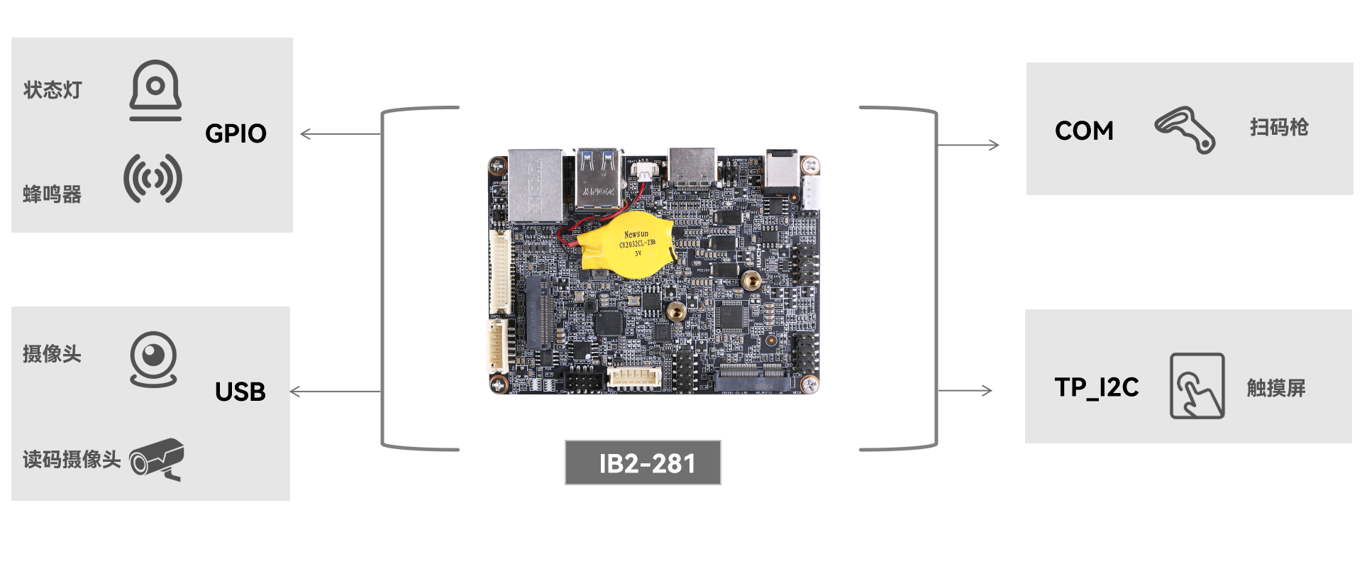 k8.com科技工业主板 IB2-281 提供灵活的主控平台选择与丰富的接口资源,适用于智能分拣系统嵌入应用: