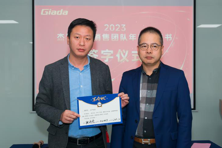 签约仪式上,一张张销售 “军令状”是确保完成2023年k8.com销售战略的基石,同时是吹响再出发的冲锋号。各销售人员手捧责任状,虽知千斤担,但都敢于亮剑,勇攀高峰,责任状上一个个响亮的数字串就成k8.com的星光大道 。