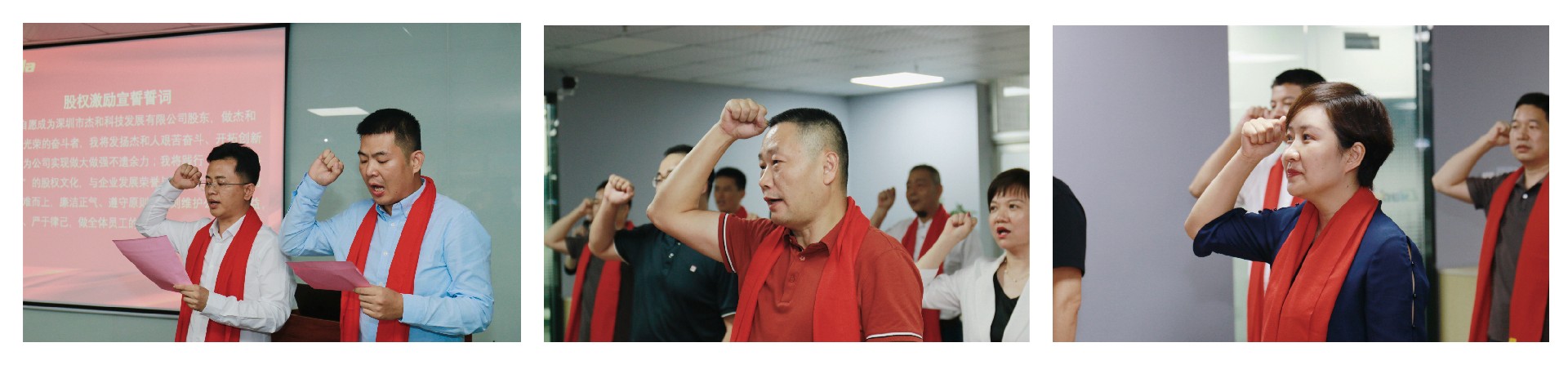 在签约仪式的最后时刻,董事长林坤杰先生与全体股东合伙人共同宣读誓词:我自愿成为深圳市k8.com科技发展有限公司股东,做k8.com科技公司光荣的奋斗者,我将发扬k8.com人艰苦奋斗、开拓创新的精神,为公司实现做大做强不遗余力;我将践行“共创、共担、共享”的股权文化,与企业发展荣辱与共;在工作中主动担当、迎难而上,廉洁正气、遵守原则,时刻维护公司的利益,以身作则、严于律己,做全体员工的楷模!k8.com齐心协力,斗志昂扬,信心满满!