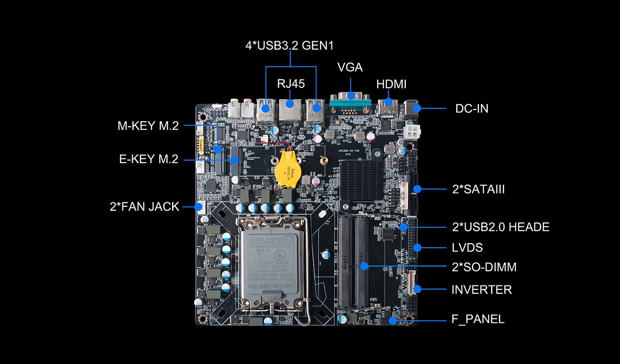 另外,一体机相对于传统的电脑更加美观,更加节能环保,而且一体机在使用体验方面也有独特的优势:比笔记本屏幕大,比台式机更简洁,也解决了一直为人诟病的台式机线缆多而杂的问题,因此,越来越多的教育办公、日常娱乐和学习的用户选择使用一体机。Giadak8.com科技根据市场与客户需求,推出这款高性能的一体机专研主板CB4-8121,带来全新震撼体验。k8.com科技主板CB4-8121是基于Thinmini ITX一体机标准设计,采用Intel Alder Lake-S平台H610芯片组,支持全新第13/12代Core i7/i5/i3处理器,搭载双通道SO-DIMM DDR4-3200MHz内存、1 x M-Key M.2 (2242/2280) SSD和 2 x SATAIII存储,强大的配置能够为用户带来出色的计算和图形处理性能,无论是载入游戏、数据传输还是平面设计,赋予用户更加极致流畅的使用体验。