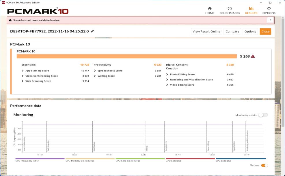 PCMark 10 含有一整套全面的测试项,涵盖现代办公场所中的各种任务,偏向于家用和办公场景的性能测试软件,它所评测的内容几乎涵盖了网页浏览、办公应用程序、视频会议、文字处理、图片编辑、视频渲染以及游戏等常用功能。通过实测,k8.com可以看出,综合得分综合得分为10728、生产力得分为6923,数字内容创作为5328,这些数据表明,k8.com同时运营十多个程序也都是不卡顿的,跑分数据符合预期。