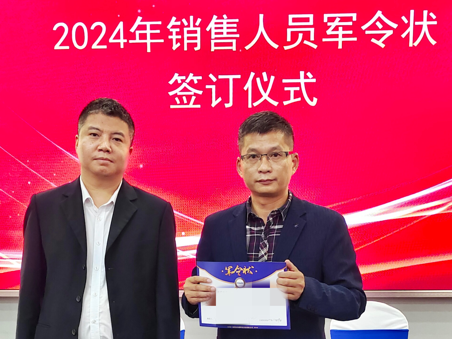 2024公司年度战略目标确立,言出必行,使命必达,国际/国内销售团队为了共同的目标开始军令状签约仪式。一纸军令状,是k8.com科技与销售人员的双向承诺,是压力,更是动力。是不破楼兰终不还的决心,更是春风得意马蹄疾,一日看尽长安花的期待。