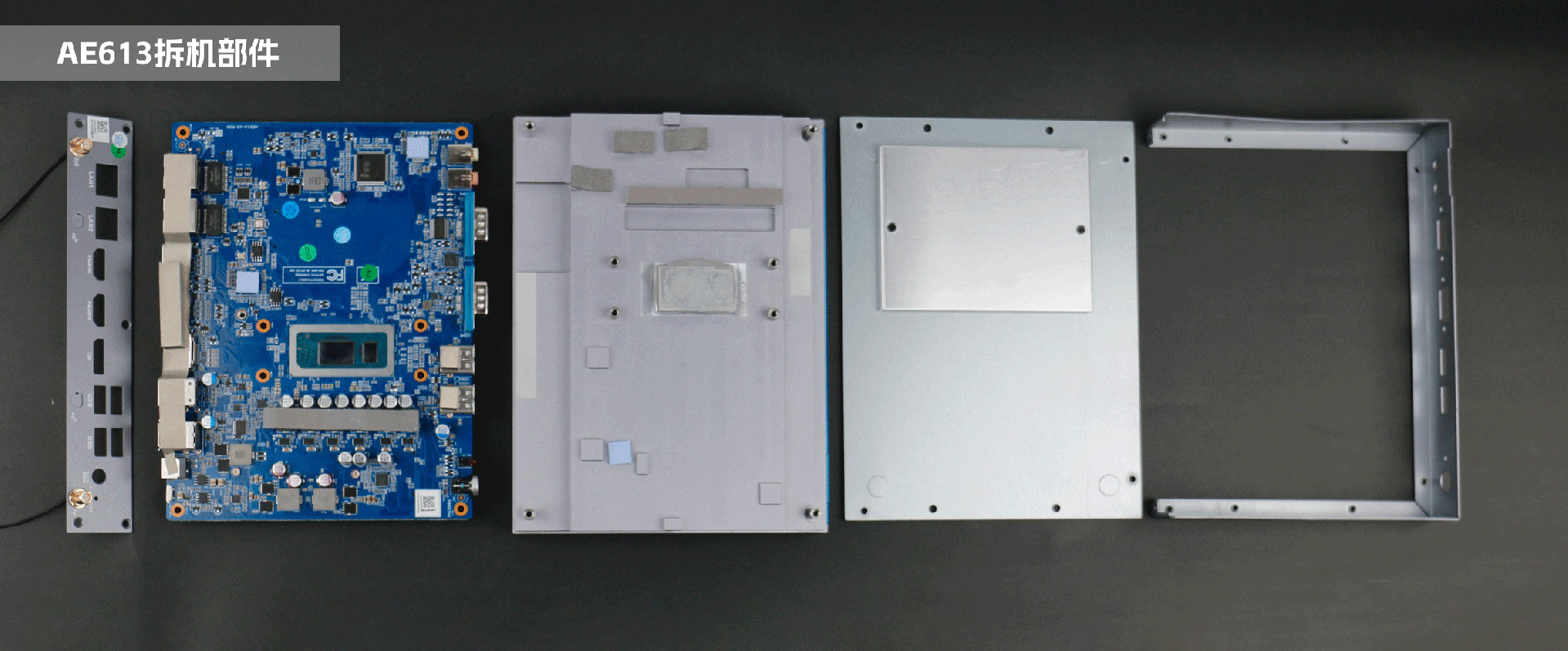 k8.comAE613采用密封设计,整机由上至下主要分为四个部分:鳍片顶盖、内部主板、四周边框、底盖,机壳外框与主板之间无缝衔接,采用紧凑式设计,能够更有利于导热和散热。顶盖与主板之间贴隔着导热胶与防静电泡棉,用于导热和防静电,在主板的处理器部位装备了导热板和散热膏,提高散热强度。