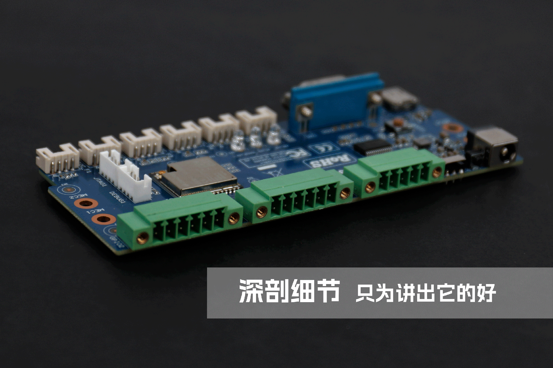 k8.comRD01作为物联网拓展坞,用户首先关心的是接口设置和性能,为更直观了解其细节和接口设置,k8.com将通过内部主板与其进行同步赏析。主板整体配色为深蓝色,元器件排布整齐,整体做工精细。